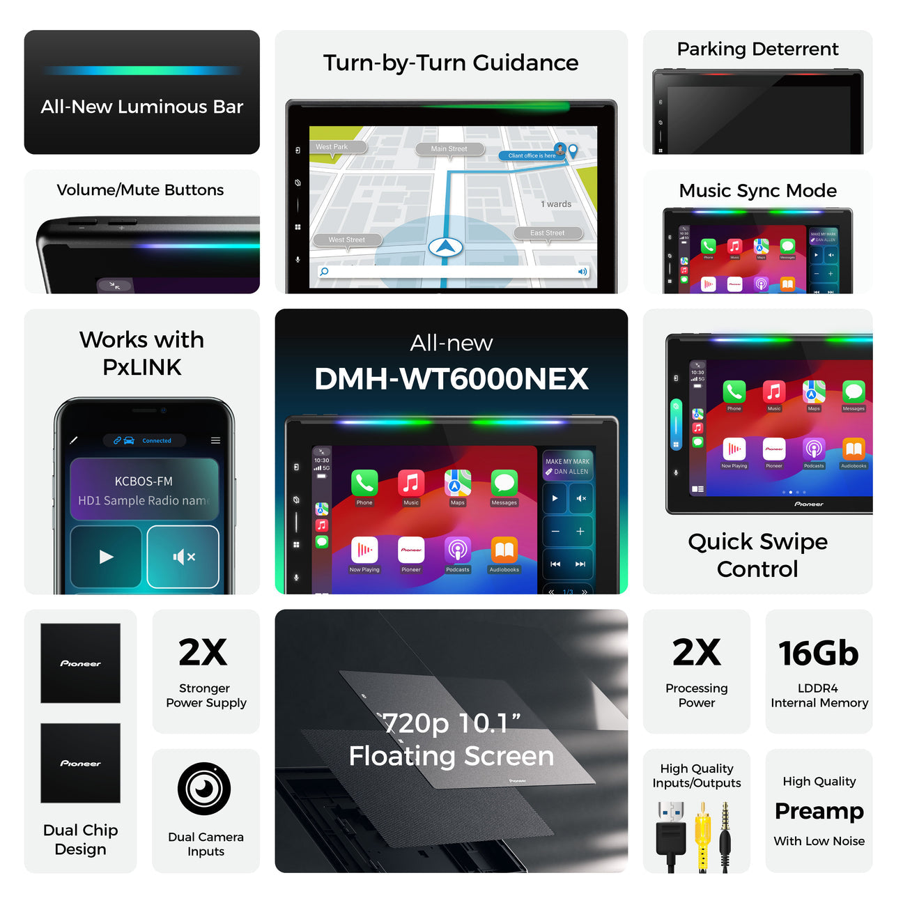 10.1" High-Quality Floating-screen – Apple CarPlay®, Android Auto™, Amazon Alexa via Pioneer Vozsis, Bluetooth® - Multimedia Digital Media Receiver with built-in high-quality Wifi®